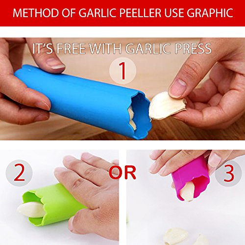 ★ ★ ★ ★ ★ EASY SQUEEZE EASY CLEAN: The ergonomic, comfortable handles and innovative design make squeezing and peeling of gralic cloves truly satisfying. Cleaning and washing of garlic mincer is Easy too. Just rinse under water or run through the dishwasher.