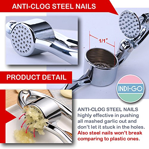 ★ ★ ★ ★ ★ ANTI-CLOG STEEL NAILS: Highly effective in pushing all mashed garlic out and don't let it stuck in the holes. Also steel nails won't break comparing to plastic ones.