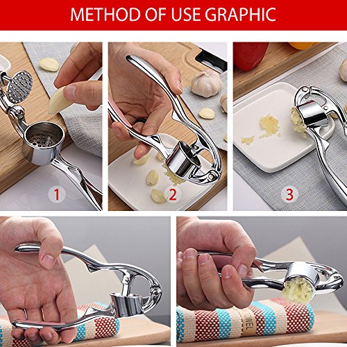 ★ ★ ★ ★ ★ HIGH QUALITY MATERIALS: Garlic press made of food grade hygienic Zinc Alloy material, Stain resistant, corrosion resistant, rust resistant, dishwasher safe, strong, durable.