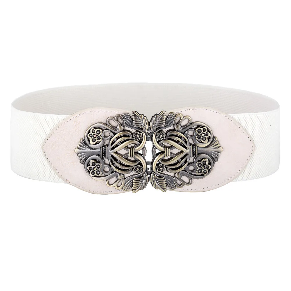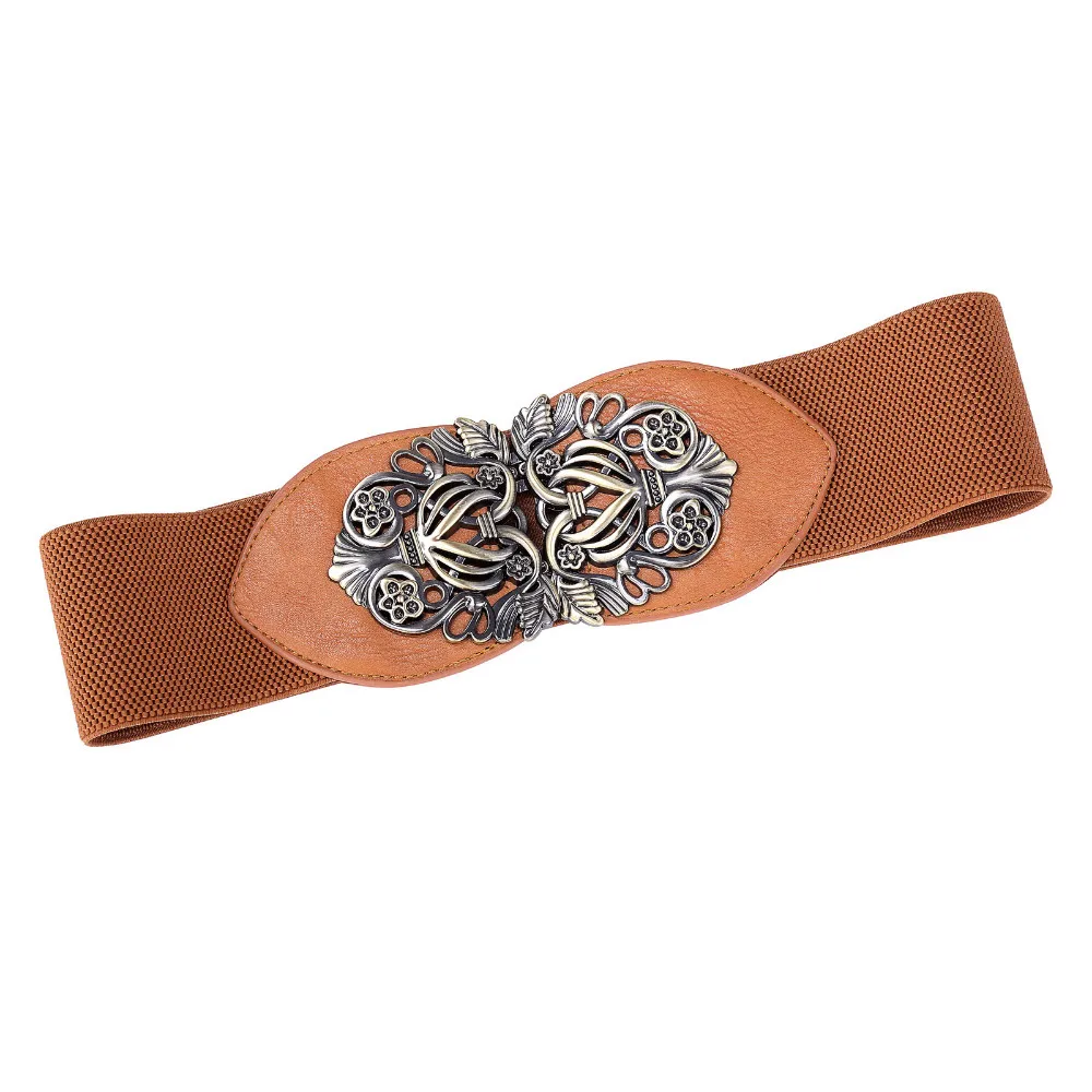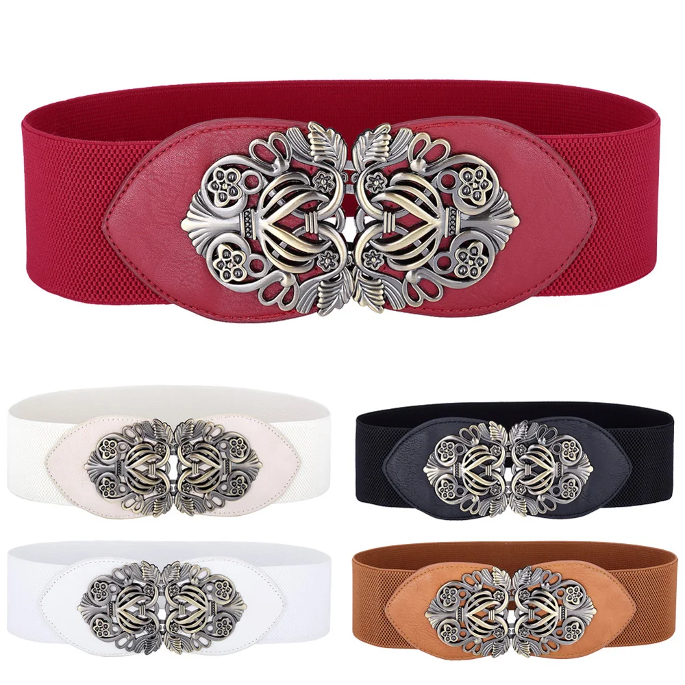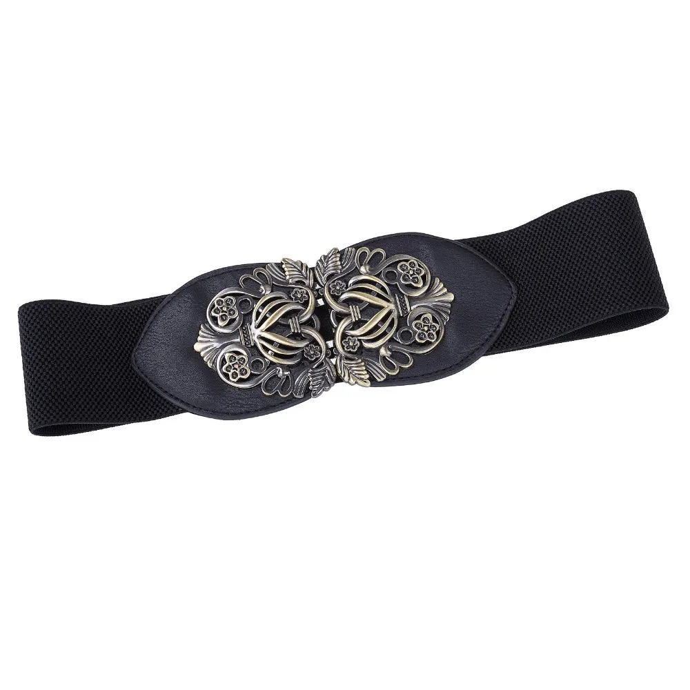 PU Waistband Women Elastic Belt :2018 Korea Vintage Retro Metal Wide Double Buckle Belt