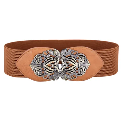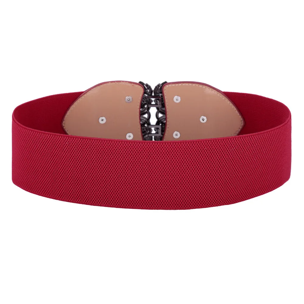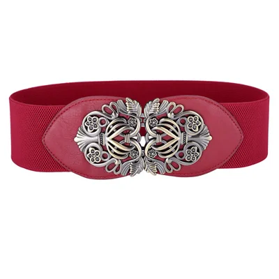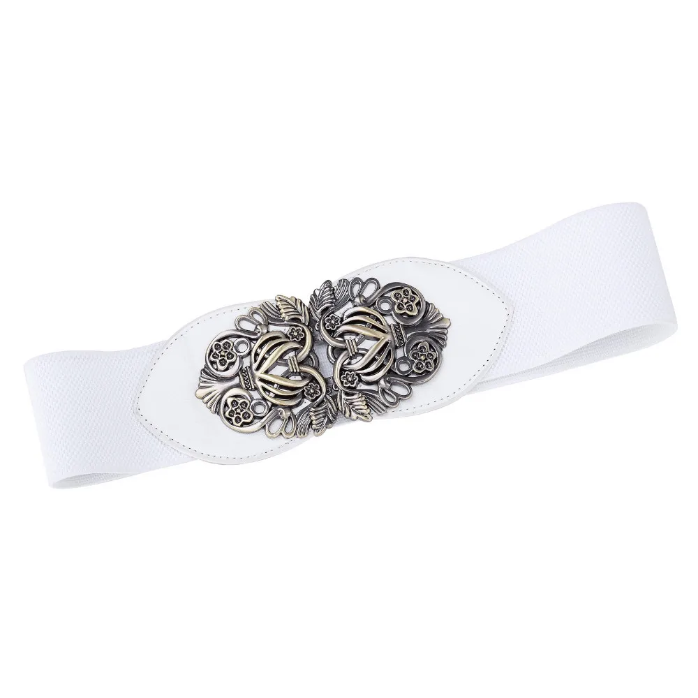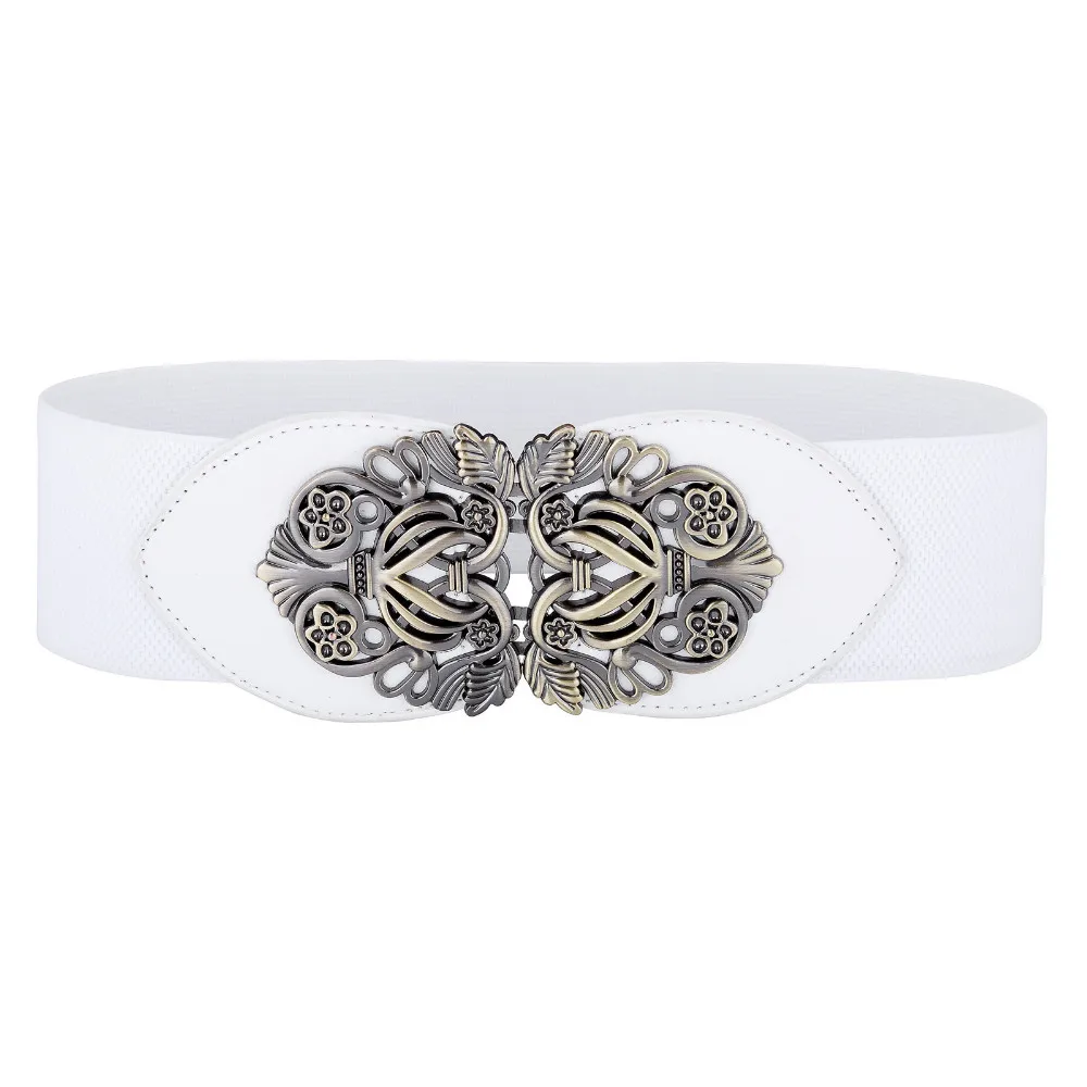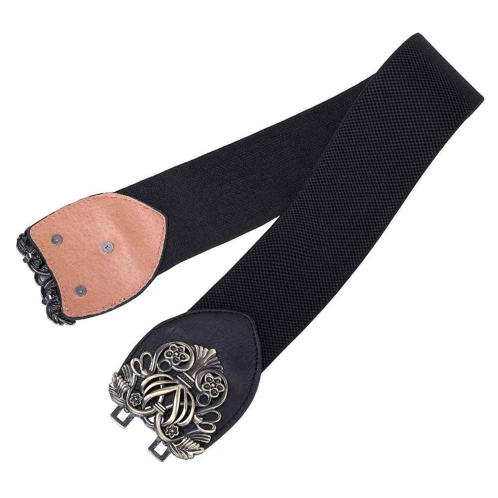 PU Waistband Women Elastic Belt :2018 Korea Vintage Retro Metal Wide Double Buckle Belt