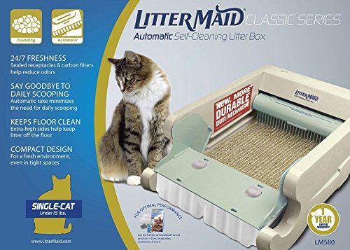 Studio : LitterMaid Publisher : LitterMaid Binding : Misc. Product Description Maintain a clean litter box without any hassles! Littermaid LM680C Automatic Self-Cleaning Classic Litter Box (LM680C) is apt for all the cat owners who love their pets but hate to clean and maintain the litter boxes. With an automatic drive mechanism that combs the litter for waste and debris, this Littermaid classic litter box will quietly improve your cat's quality of life. In addition to cleaning, the Littermaid Self Cleaning Litter Box will deodorize the litter area by employing carbon filters to fight the scent of urine and feces. This product is ideal for those pet owners who are elderly, pregnant mothers or those with limited physical mobility. It helps you to save time and money and creates an odor free aura that can enhance the overall environment of the place. 0