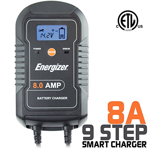 Energizer ENC8A 8 Amp Battery Charger with LCD + Maintainer 6/12V - 9 Step Smart Charging technology will improve your battery's life cycle for Car RV Boat
