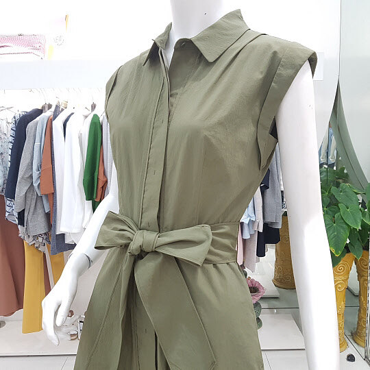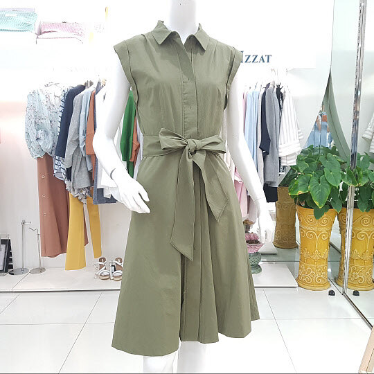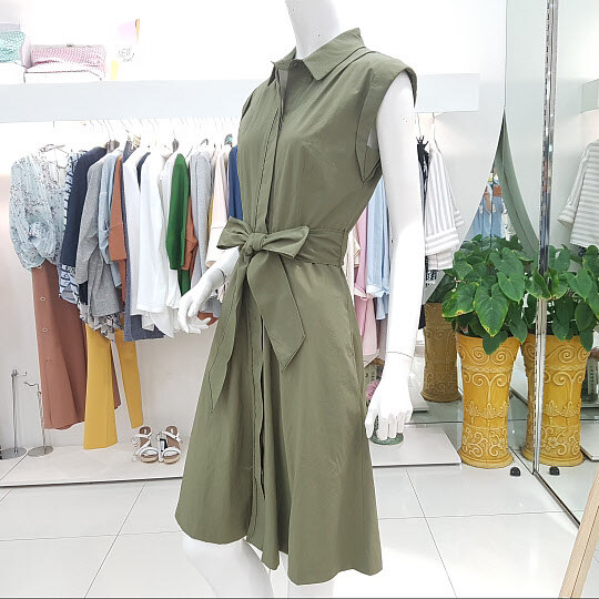 벨트로 포인트를주어 세련미를 더하였으며 잘록한 허리라인을 잡아주는 디자인입니다