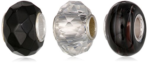 -. Title : CHARMED BEADS Sterling Silver Black and White Glass Bead Charm Set