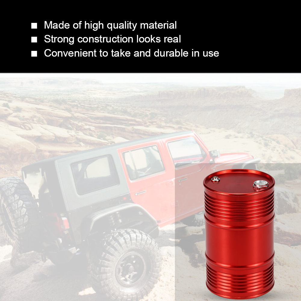 This product is made of high quality metal material and durable in use. Strong construction let it look real, and it is also convenient to take. Its height is about 95mm, hollow, oil cap can be unscrewed as differential oil, shock oil container. This is the good choice to decorate your crawler RC car. Just what you are looking for.