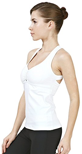 -. Binding : Apparel -. Brand : TH3 -. Department : womens -. Feature : Teflon(c) fabric protector makes fabrics easy to clean; Moisture wicking evaporates sweat quickly keeping you cool and dry. / An 8.5 ounces/sq. yard densely knitted fabric for support and comfort made with Nylon for strength and durability. / Stretch fit with Lycra(c) to give your body complete coverage, while also flattering your curves; Flat internal seams that reduce chafing. / Built-in shelf bra with removable pad included. / Machine wash cold -. Model : 1-3860 -. ProductGroup : Apparel -. ProductTypeName : SHIRT -. Title : TH3 Women's Performance Yoga Top with Shirred Bustline