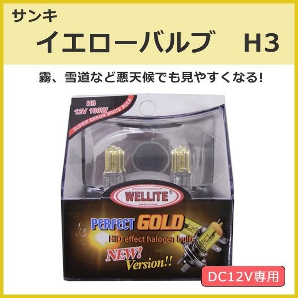 霧、雨、雪など悪天候に最適なイエローバルブです。 製造国:韓国 素材・材質:耐熱ガラス 仕様:DC12V専用バルブ形状:H3定格電力:100W ※サプライヤー直送品 ご注文後7~8営業日後の出荷となります【商品名】サンキ イエローバルブ H3