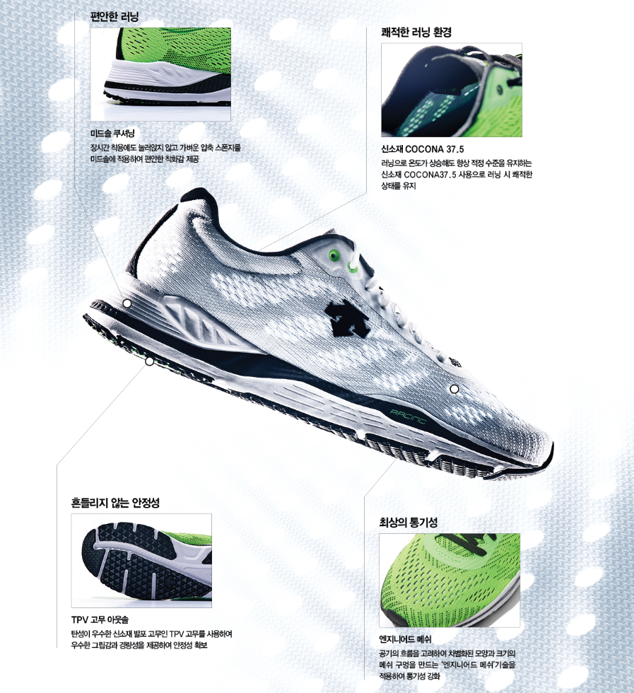 - 기존 압축 스폰지 대비 뛰어난 경량성을 가진 미드솔을 사용하여 가벼운 착화감을 느낄 수 있습니다.