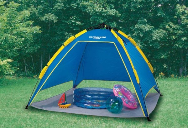 | 天井部のループを引き上げるだけで、シェルターが立ち上がり組み立てが簡単にできます。ビーチから行楽レジャーまで幅広く使えるサンシェルター!様々な場所・状況で、日中の強い日差しを適度にカット! |