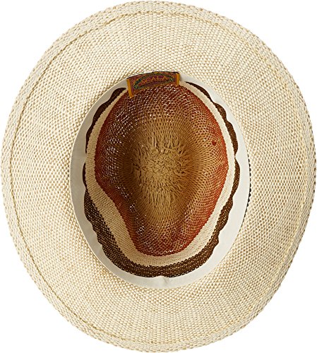 Woven toyo fedora with pinched crown.