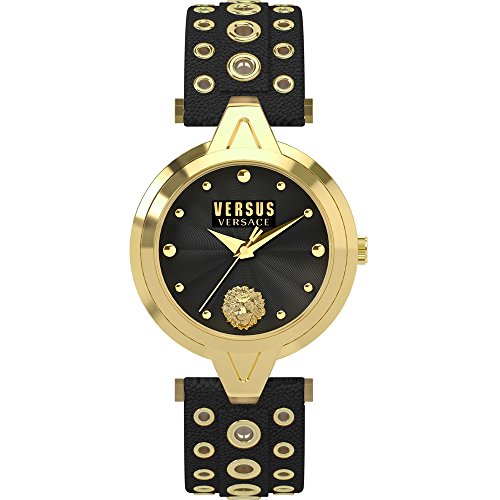 Versus Versace V_VERSUS eyelets Womens IP Gold Black Leather Analog Stainless Steel Watch SCI030016