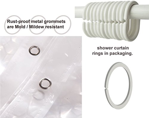 RUSTPROOF GROMMET: Rust resistant metal grommets and convenient for handling. 72''*72" standard size fits standard size bath. RUSTPROOF GROMMETS: 12 rust resistant metal grommets and convenient for handling. 72''*72" standard size fits standard size bath. Could used as shower curtain alone. Average weight: 16 oz. Average weight: 16 oz