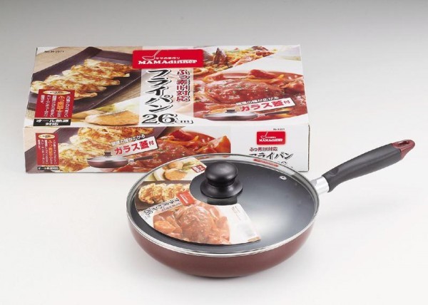 | ガラス蓋付きのフライパン。 |