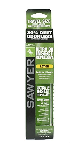 The non-greasy, odorless Ultra 30 Insect Repellent Lotion from Sawyer combines 30 percent DEET with a comfortable liposome base for up to 11 hours of protection against mosquitoes, ticks, flies, chiggers, fleas, and no-see-ums. It's comfortable for use in the backcountry or in the backyard. Similar to the earlier generation of polymer-based controlled release systems, the Liposome envelops the active ingredient, DEET, and slowly time-releases it as needed, thereby extending the effectiveness of the repellent. Unlike polymers, however, liposomes are a natural compound more often used in cosmetics, which allows this formula to be comfortable to the skin, easier to wear, and practically odorless. Sawyer Ultra 30 is also non-staining, compatible with sunscreens, and sweat proof. It's available in an airline-friendly 3-ounce bottle, as well as a 4-ounce bottle. Since 1984, Sawyer Products has offered the best, most technologically advanced solutions for protection against sun, bugs, water, and injuries -- everything from first aid kits developed for wilderness to point-of-use water filters that filter contaminated water to levels cleaner than U.S. bottled water. 0 |