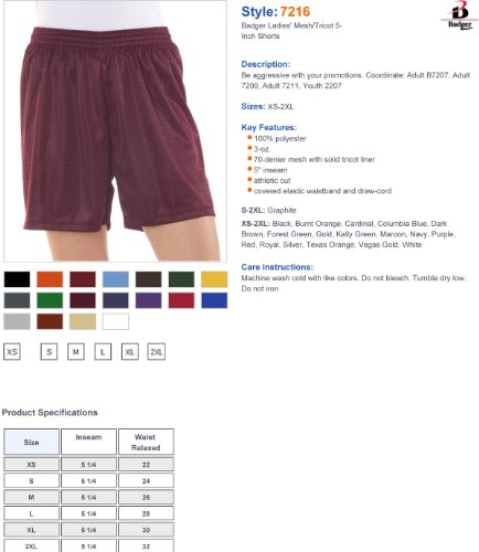 -. Title : Badger 7216 BD Ladies' Mesh Sht 5"Ins