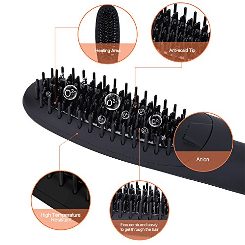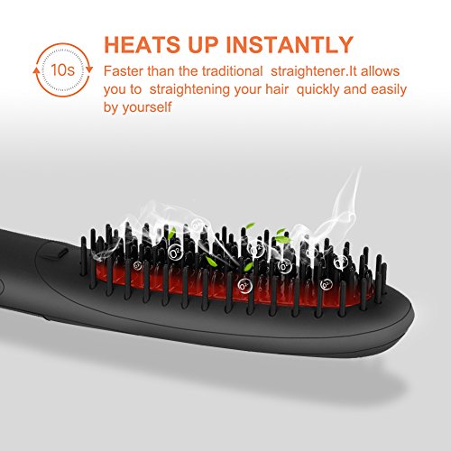 ✔PORTABLE DESIGN:This portable heat brush is specially designed to be slimmer and lighter.It allows you to straighten hair at home or while traveling easily because of its portable and powerful design