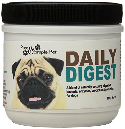 Studio : Chasing Our Tails, Inc. Publisher : Chasing Our Tails, Inc. Binding : Misc. Product Description Chasing Our Tails is proud to bring you Pure Simple Pet Daily Digest . Daily Digest contains the highest levels of 5 beneficial probiotics and 6 enzymes, making it one of the most complete digestive supplements available. Used daily, this combination can help keep a healthy, well-balanced micro flora in your dog's digestive tract, boosting their immune system and helping food digestion as well. Daily Digest is recommended for all life stages and should be fed with each meal. A handy 1/4 tsp. scoop comes in each container to aid in feeding recommended amounts based on weight. For dogs under 25 lbs., sprinkle 1/2 scoop of Daily Digest over two meals per day. Every allergy dog will benefit from the daily use of this product. 0