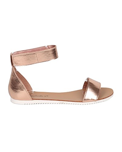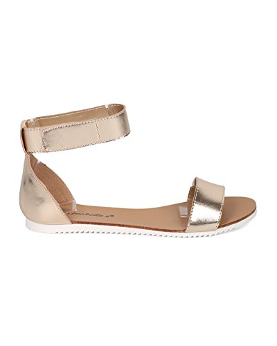 | Women Ankle Strap Sandal - Casual, Summer, Everyday - Velcro Flat Sandal - GG14 By Breckelles |