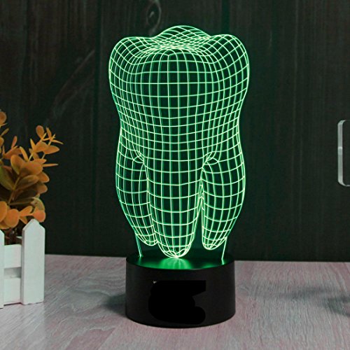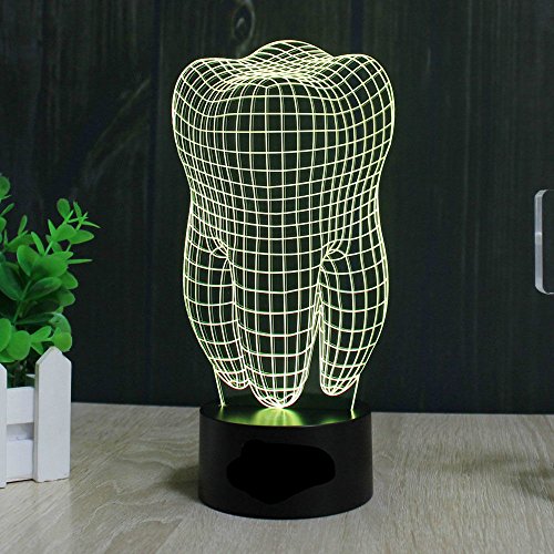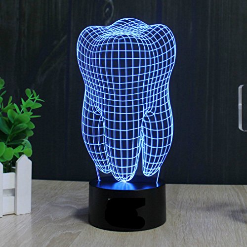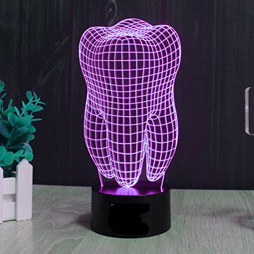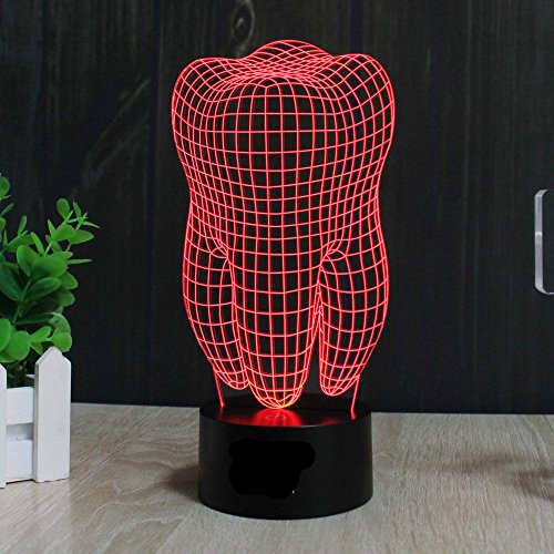 SUPERNIUDB Health Tooth 3D illusion LED Night Light 7 Color Touch Switch Table Desk Lamp