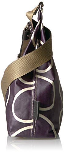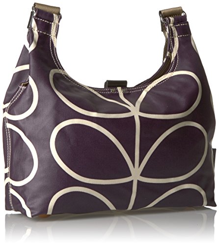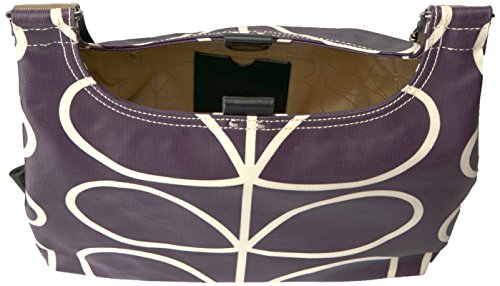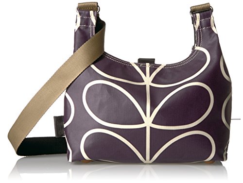 Matte laminated mini midi sling bag in the 'giant linear stem' print with leather trims, double sided adjustable webbing strap and leather magnetic tab for closure. Inside details include sand linear stem jacquard lining, small leather logo card holder pocket, small zip pocket, elasticated key chain and mobile pocket. Silver coloured hardware. Adjustable webbing tape strap that allows the bag to worn as a shoulder bag or across the body (max length 108Cm).