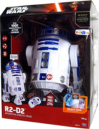 Engage in galactic fun with the Star Wars R2-D2 Interactive Droid, which features a remote control that commands the droid and initiates over 1,000 action combinations for never-ending fun. R2-D2 will respond to you with voice-activated talking and his head turns during entertaining sound effects. With the push of a button, have the droid move forward, backward, left or right and watch the robot turn in any direction for ultimate interactive excitement.Feature