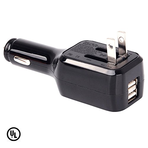 Standrd 2 in 1 dual USB port mobile phone UL certification AC/DC power adapter with foldable AC plug (Input 100-240V 0.35A 50/60Hz, Output 5V 2.1A) and DC car charger plug (Input 12V 1.6A, Output 5V 2.1A)