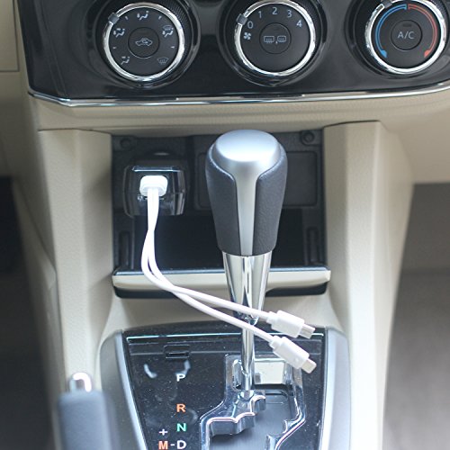 Lycas 2 Port Car Charger with Micro USB Charging Cable, Black