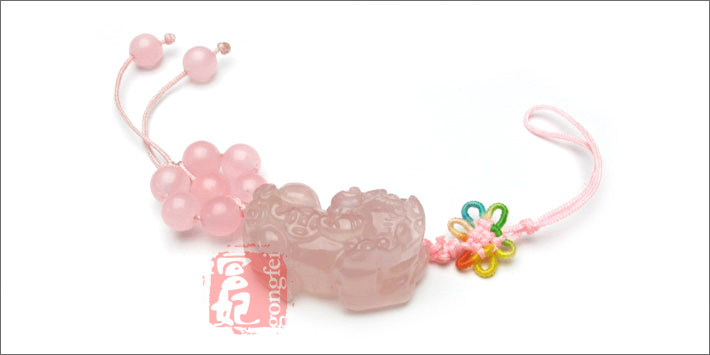 开光 天然水晶饰品 粉晶貔貅手机链 挂件 七星阵
