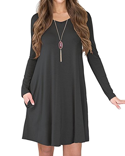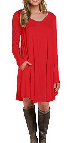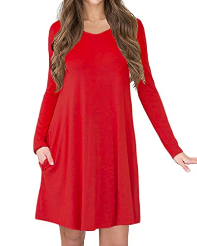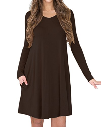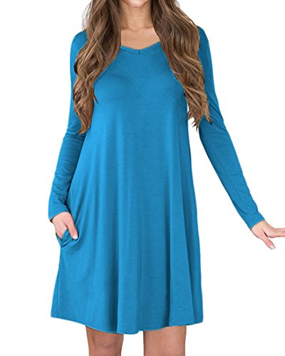Features:long sleeve,side-seam pockets,v-neck,asymmetrical hemline,short length ,casual style,flowy dress.