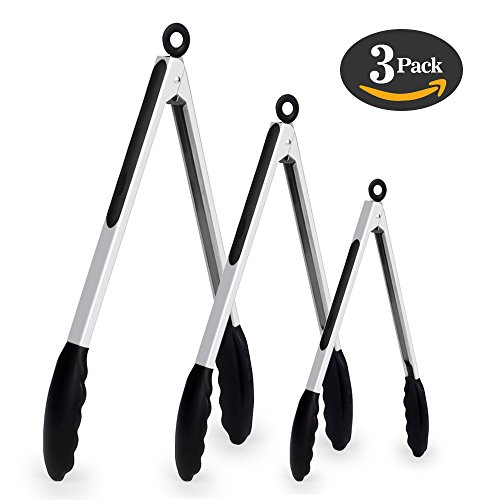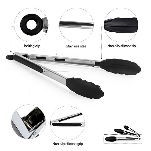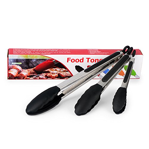 Silicone Kitchen Food Tongs Set,7 inch/9 inch/12 inch for Cooing,Barbecue,Salad,Grilling,Frying