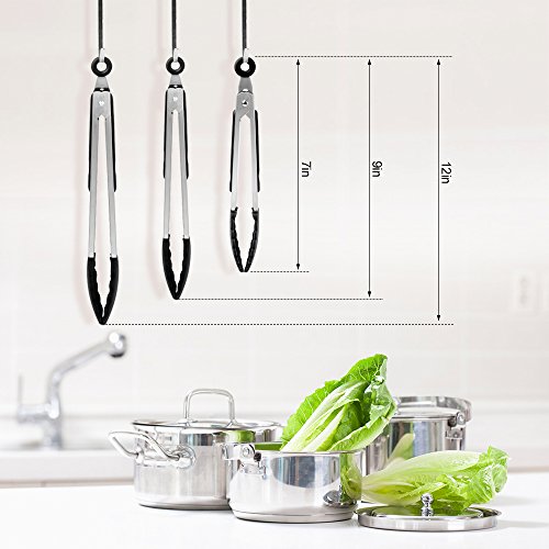 - THREE LENGTH CHOOSE - included three tongs 7inch/9inch/11inch,you can choose suitable size for your cooking.