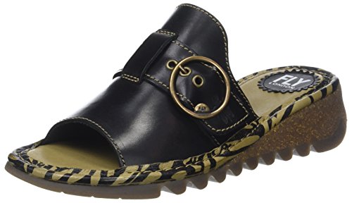 Studio : Fly London Publisher : Fly London Binding : Apparel Product Description A versatile pair of mule sandals with a peep toe design. Featuring eye-catching buckle detailing and a low wedge heel for a subtle height boost. Made from a smooth soft leather with a waxed finish. 0