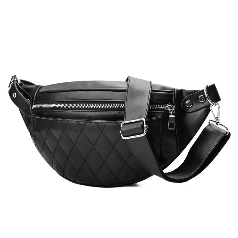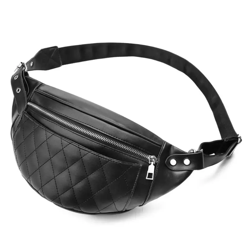 ジッパーウエストショルダーパックユニセックスpuポーチカジュアルスポーツメッセンジャー固体バッグ