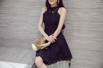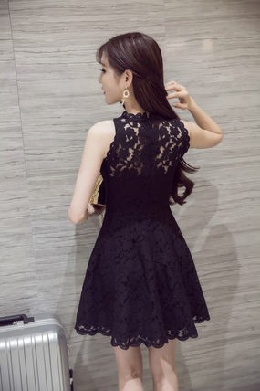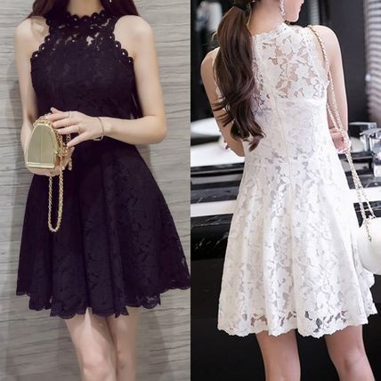 パーティードレス ミニ丈 フレアワンピース 総レース ノースリーブ ホワイト ブラック 上品 大人 透け感 清楚 お呼ばれ drgz2552