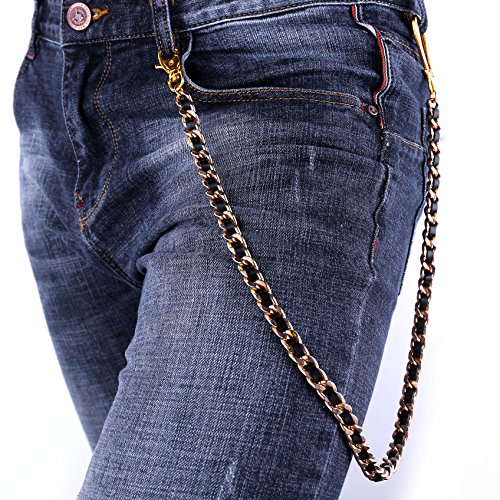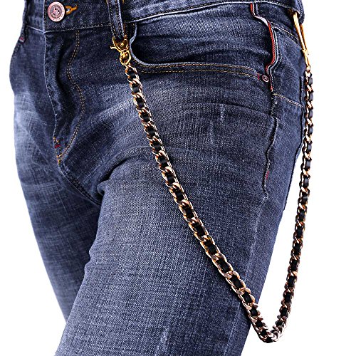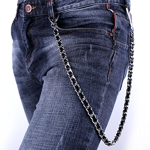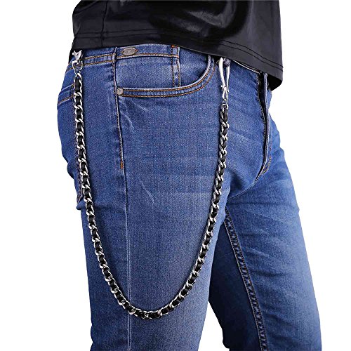 Men Pants Chain Punk Leather Braided in Cuban Chain Trousers Jeans Chain Key Chain Accessories