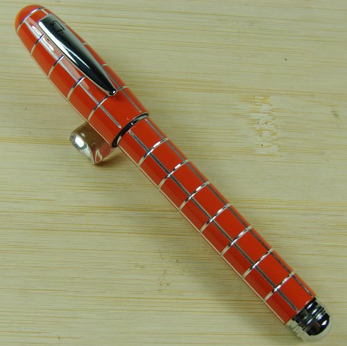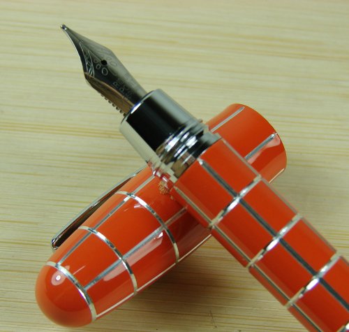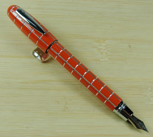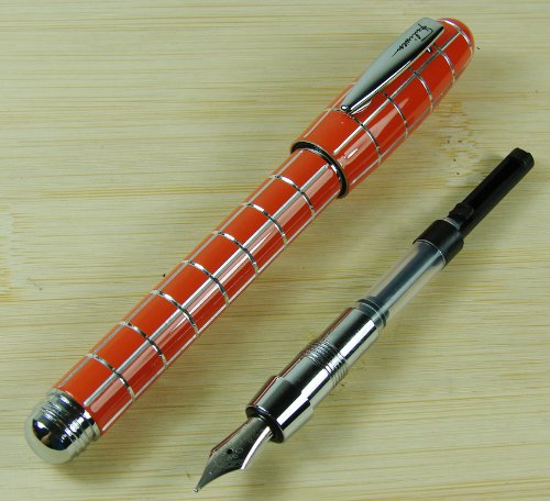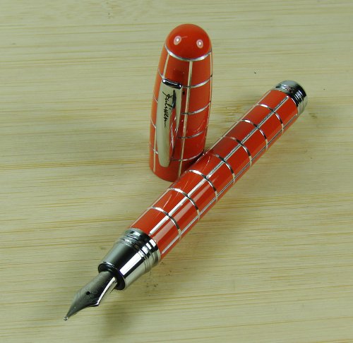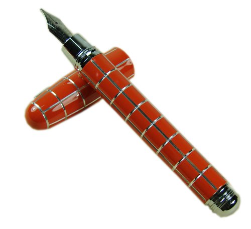 -. Title : Lanxivi® Fuliwen Orange Check Silver Line Resin Fountain Pen Fine Nib Size with Pen Pouch