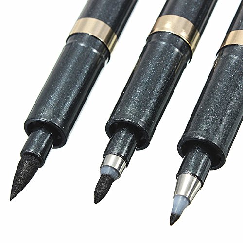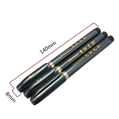 -. Feature : Color: black / Size: 140x8mm / Line width: Large, medium and small regular script / Package included 3 x Calligraphy Pens