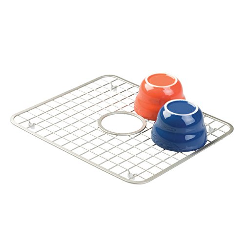 mDesign Kitchen Sink Protector Grid - Regular with Hole for Sink Strainer, Satin