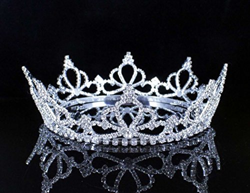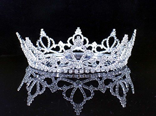 This is stunning queen Austrian rhinestone full hair crown . Glittery Clear Austrian rhinestones are prong set on Silver-plated metal. All the rhinestones are prong set by hands and are sparkling! There are four pin loops inside the crown to help secure it on head. This tiara is perfect for wedding, party, prom, pageant or any special occasions! Thanks for looking!Feature