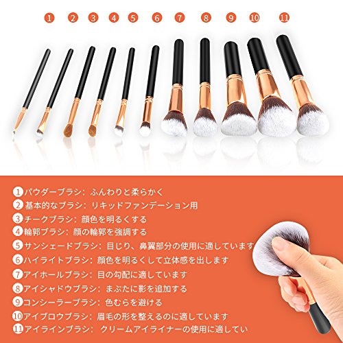 11개세트/다종다양:상품에는 파우더 브러시,파운데이션브러시,teak 브러시 등 세세하게 구별지어 처리되는 나와 옷자락 해 일상 메이크에는 필요하다고 할 수 있습니다.고급 섬유모나 골드색 알루미늄 소재나 목제 핸들이나 블랙 목제 핸들 등 고급감 있다디자인가 되고 있습니다.