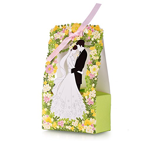 Weddingbob 20Pcs Bridal Shower Wedding Party Favour Candy Gift Box Bags with Romatic multicolor lace design invitation and Wedding ceremony scene design with hollow-out