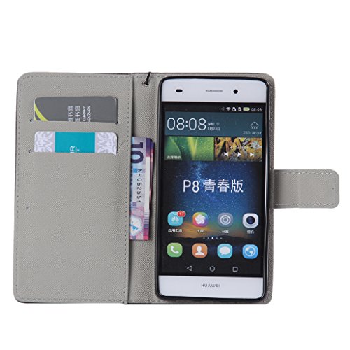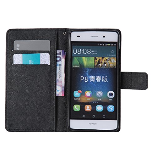 -. Feature : These phone cases are only compatible with Huawei P8 Lite(not compatible with Huawei P8), not compatible with other patterns of phone. / Material: PU Leather / Phone case with card slot, hand rope. / Magnetic PU leather case with with Card slot holder, can not only provides your phone a full-body protection but also provides you position to place your bank cards, credit cards or business cards. / Book viewing Design and multiple usage, make your tablet looks luxury, prevents your phone from scratch and absorbs shocking.