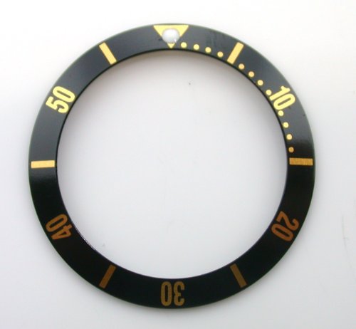 The item for sale is a brand new, aftermarket, Swiss bezel insert in black in gold fonts. It is made for a Omega.