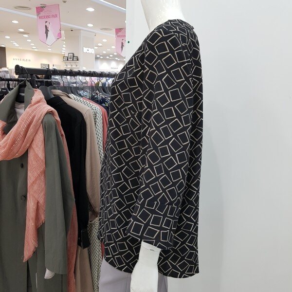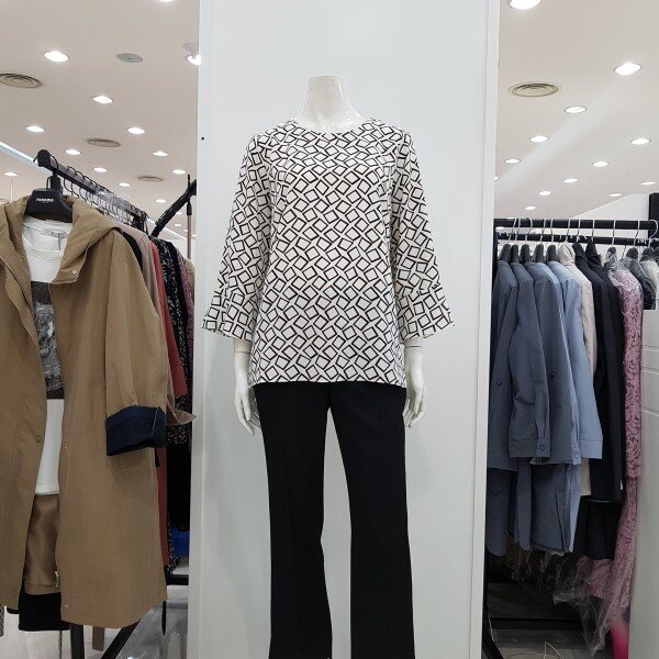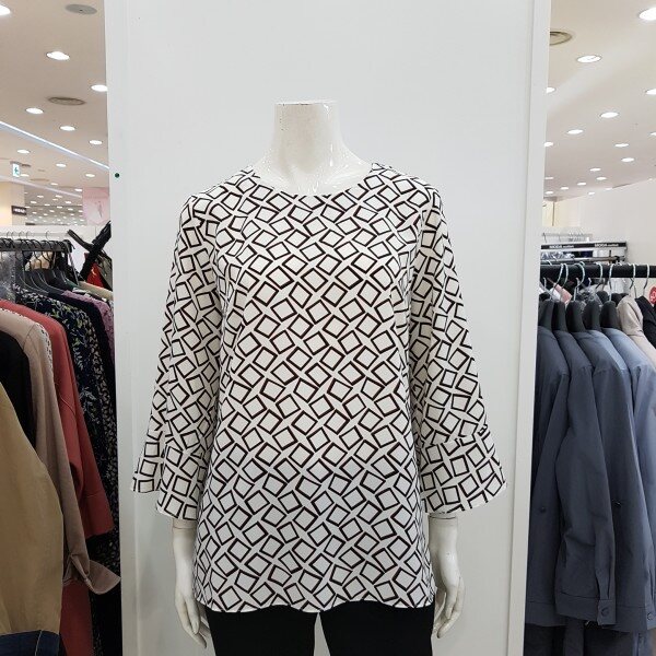 사각 모양으로 나염이 들어간 블라우스로 깔끔하게 입기 좋은 라운드넥 블라우스 입니다. 세미 정장의 블라우스 이너로 입기 좋은 디자인이며 얇지않고 적당한 두께로 간절기부터 입기 좋은 스타일 입니다. 심플한 스커트 팬츠 아이템과 무난하게 잘 어울리는 세련된 블라우스 입니다.