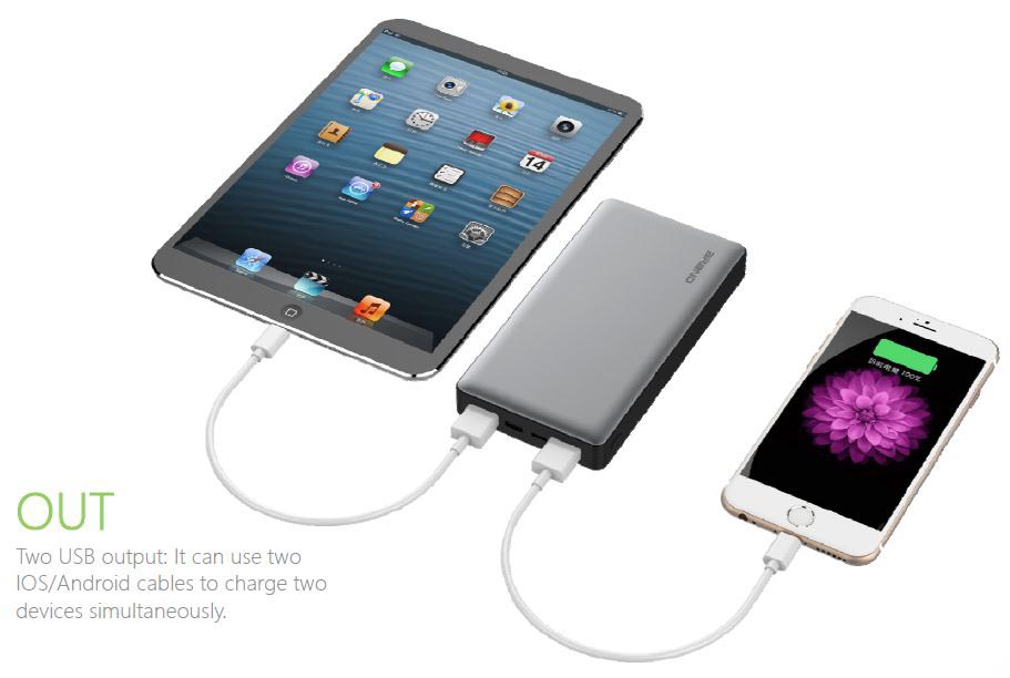 Power bank ini memiliki 2 buah port output yang cepat untuk mengisi daya perangkat Anda. Hal ini menjadikan Anda dapat mengisi daya 2 buah perangkat Anda sekaligus dalam satu waktu. |
