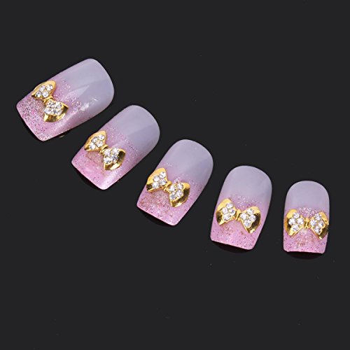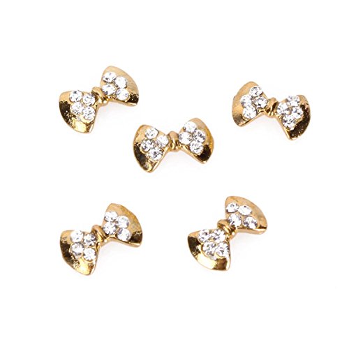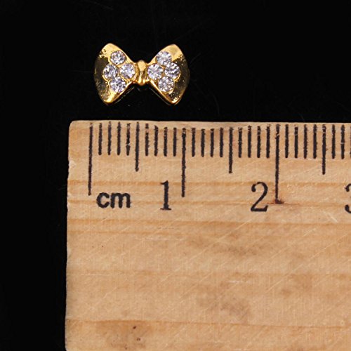 One Set of 3D Bow Tie Nail Art Studs-Golden and clear rhinestoneGreat for Both Professional Nail Specialist or Nail Art Learner