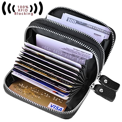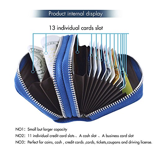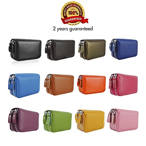 -. Feature : PREMIUM QUALITY:100% genuine leather wallets with fabric lining and beautiful zipper closure style handmade by the finest craftsmanship. / LARGE CAPACITY: 2 x Zippered Compartments, 11 x Credit Card Slots, and 2x Cash Slots for Plenty cash . / COMPACT SIZE :4.5*3.1*1.8 inches .LIGHT WEIGHT:0.22 lbs.Convenient to put in into handbag,backpack and briefcase for working ,shopping and daily use. / RFID SAFETY & P.R.IVACY: With Advanced RFID SECURE technology ,RFID blocking wallets protect P.R.Ivate information from scanning your credit cards, debit cards, RFID driver's licenses and other RFID cards. / MONEY BACK GUARANTEE: We believe our wallet is the one you want, perfect cards, currency, coin carrier. If you're not 100% satisfactory, we will provide you full refund or a free replacement.