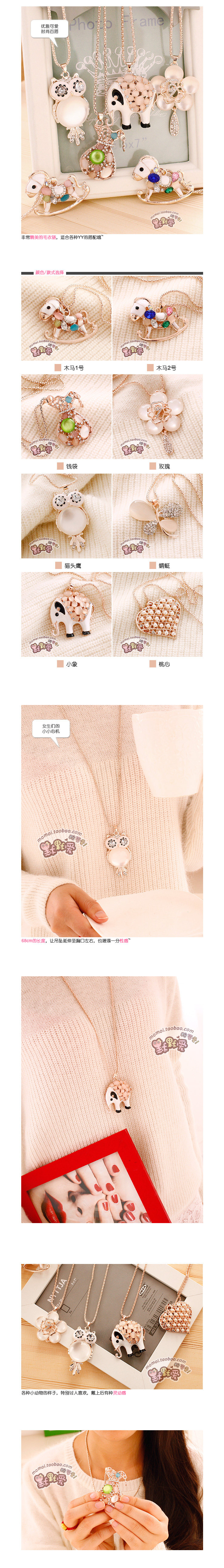 宝贝名称灵动小动物猫眼石百搭毛衣链