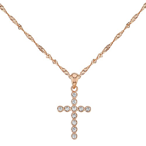 -. Feature : Rose Gold Flashed 925 Sterling Silver Clear CZ Cross Necklace Pendant for Girls / Cross Size: 0.78 in. H x 0.43 in. W (20mm x 11mm); Chain Length: 16 in. (40cm) / Age Group: Little Girls, Kids and Teens; Gift Box Included / Great Gift for a First Communion, Holy Baptism, Christening and Confirmation / Total Satisfaction Guaranteed: 30 Day Money Back Guarantee